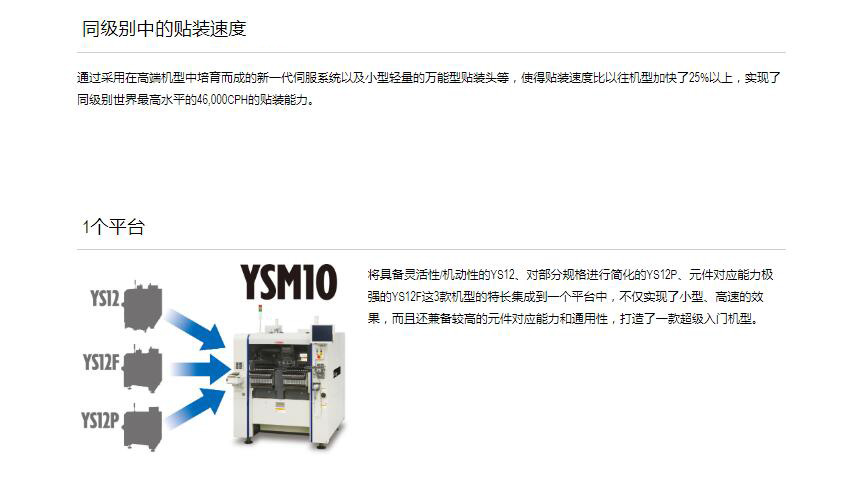 1.兼?zhèn)涓咚傩院屯ㄓ眯浴⒃谕墑e機(jī)型中實(shí)現(xiàn)更高水平貼裝能力的YSM系列入門級貼片機(jī)。