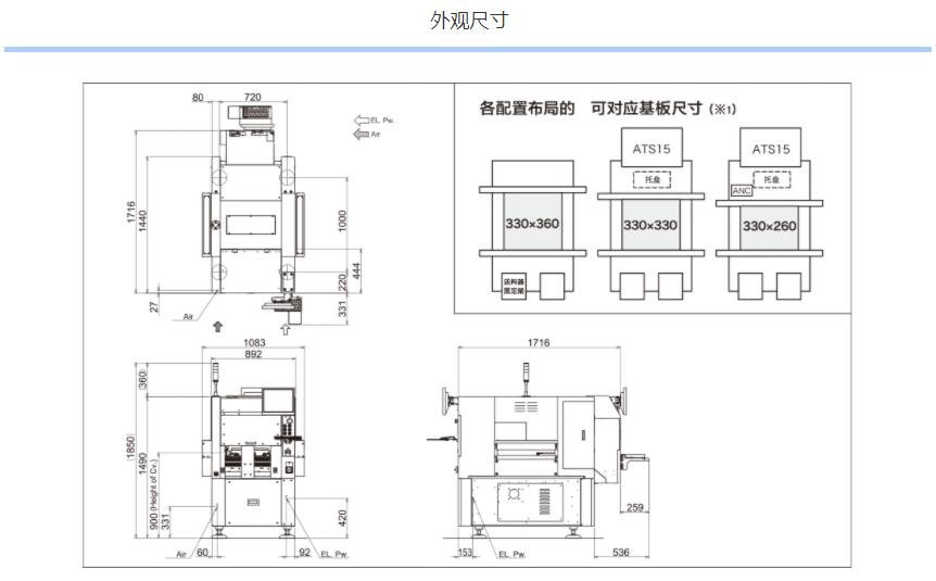 1.可貼裝較大尺寸達100mm×100mm、高達45mm的元件。